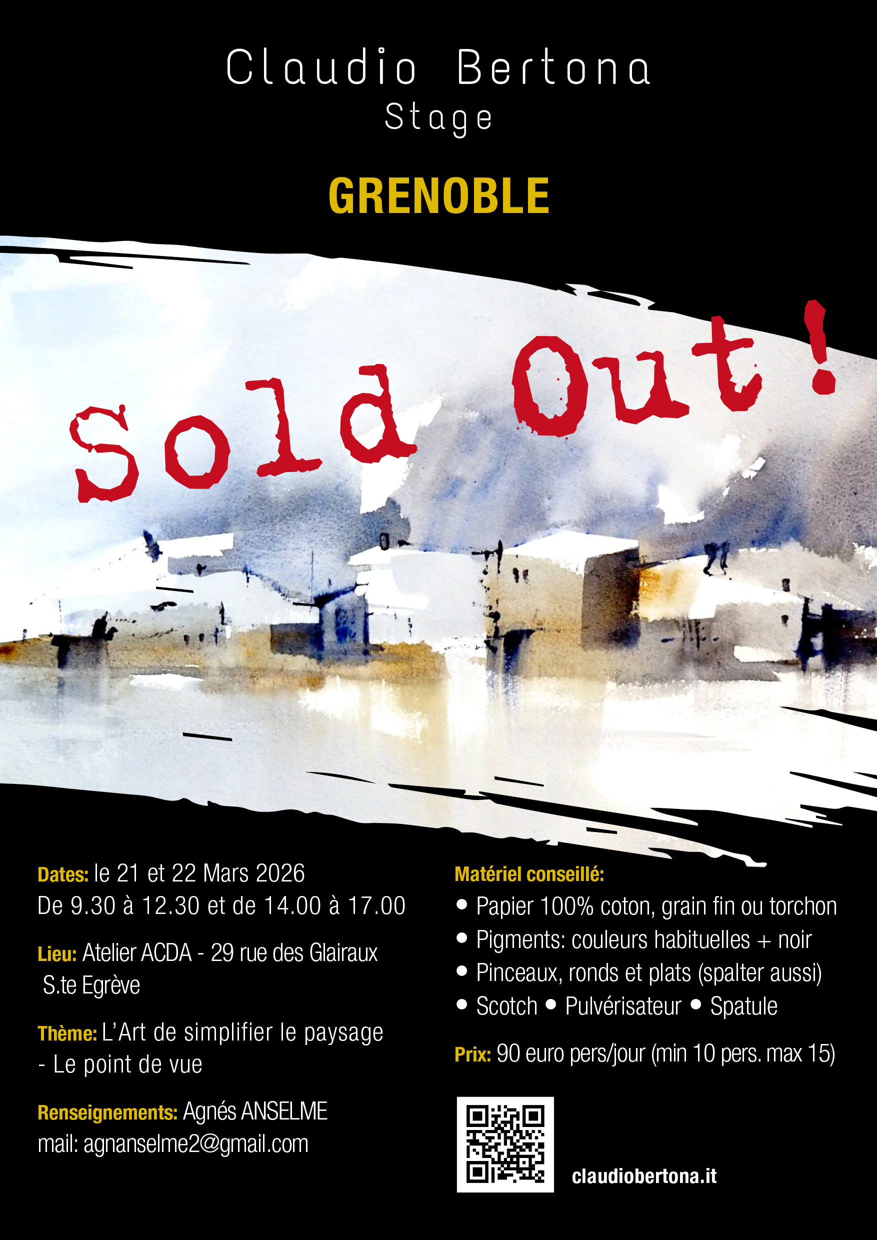 Il 21/22 marzo 2026 terrò un Stage di pittura ad acquerello presso Atelier ACDA – 29 rue des Glairaux