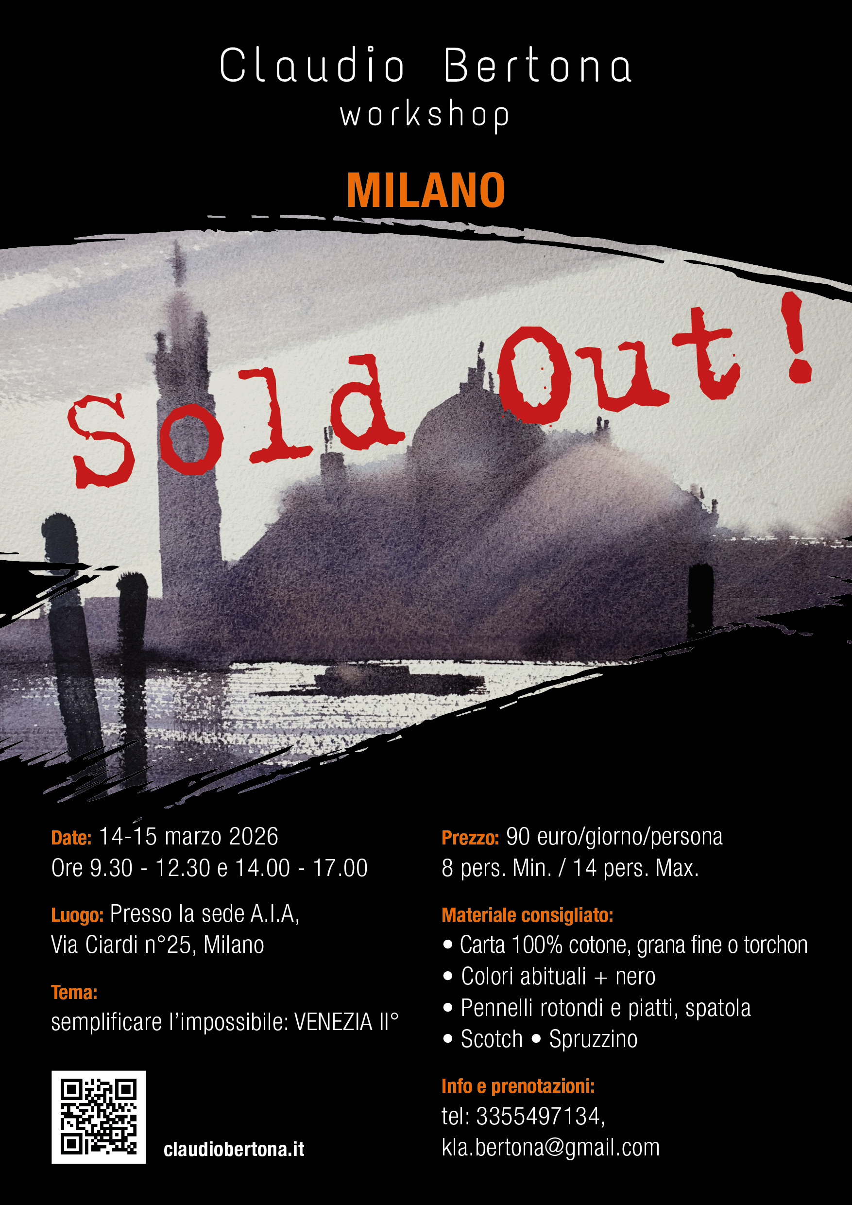 Il 14/15 marzo 2026 terrò un Workshop di pittura ad acquerello presso la sede dell’A.I.A in via Ciardi n.25 Milano.